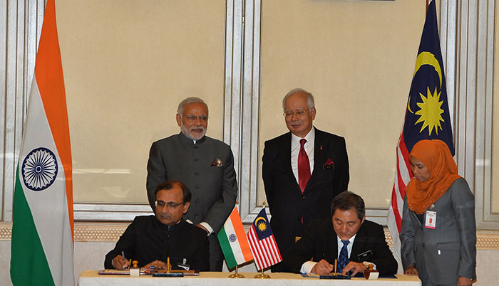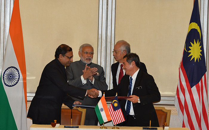 Prime Minister Modi and Prime Minister Najib Razak held wide-ranging talks in Putrajaya and jointly inaugurated the ‘Torana Gate’ in Brickfields- a gift from India to Malaysia, as a symbol of India-Malaysia Friendship. The visit also included an interaction with Corporate Malaysia, inauguration of a statue of Swami Vivekananda at the Ramakrishna Mission, visit to Batu Caves Temple and an interaction with Malaya-Indians (persons of Indian origin) at a Community Programme.